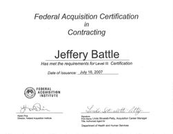 Our leader earned the Federal Acquisition Certification in Contracting (FAC-C) Level III; the highest professional achievement for federal government Contracting Officers (CO).