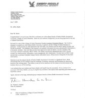 Our leader, President, and CEO, J. Battle's appointment documentation as Adjunct Professor, with the university known as the Harvard of Aviation, the world-renowned Embry-Riddle Aeronautical University (ERAU).