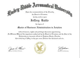 Our leader earned a Master of Business Administration in Aviation (MBA/A) degree from Embry-Riddle Aeronautical University (ERAU), and earned two Bachelor of Science (BS) degrees during his undergraduate studies; in Professional Aeronautics and in General Engineering.